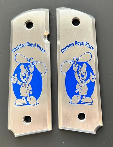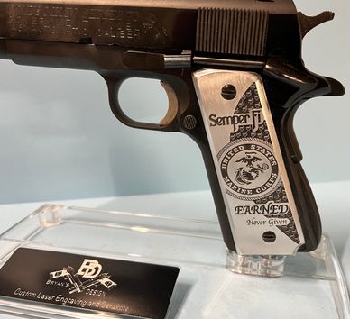 ustom Laser Engraved Pistol 1911 Full Size Grip for a Local Business is made from Aluminum and has CERAKOTE paint inlay.